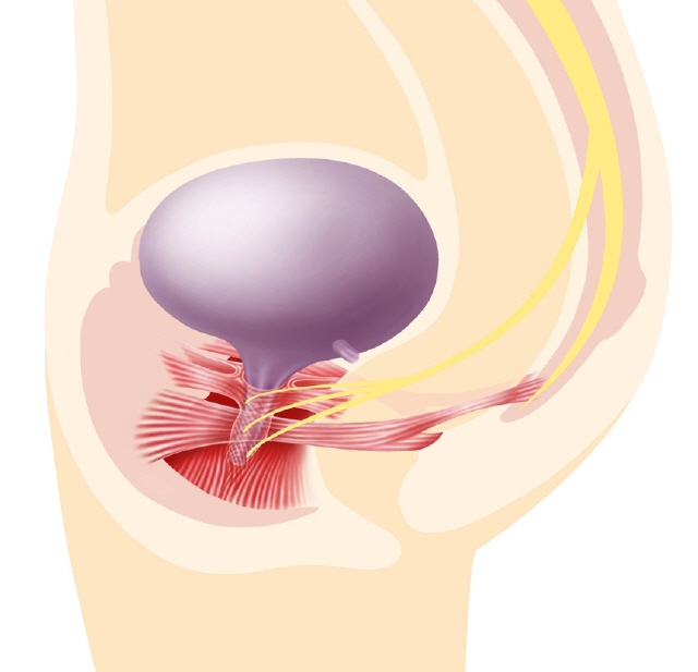 Bei Frauen können diese Teile leichter erschlaffen als beim Mann, da sie durch Schwangerschaften und Geburt(en) einer großen Belastung ausgesetzt sind. Den Beckenboden kann man mit einer schüsselförmigen, rundum fixierten Hängematte vergleichen, die zwischen den Anteilen der Beckenknochen aufgehängt ist und die so einerseits eine wichtige Stützfunktion für die Unterleibsorgane wie Harnblase, Gebärmutter und Darm übernimmt, andererseits an der Funktion der Beckenorgane beteiligt ist.