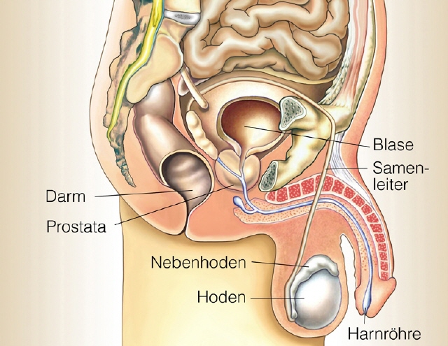 - Ausstrahlende Beschwerden in die Hoden oder in den Penis